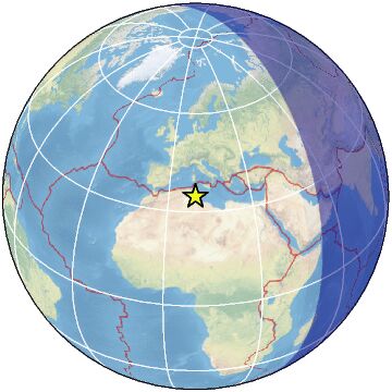 | Distance | 86 km NW of Gabès, Tunisia / pop: 110,000 / local time: 16:05:45.0 2025-04-05 14 km W of Mezzouna, Tunisia / pop: 7,300 / local time: 16:05:45.0 2025-04-05 |