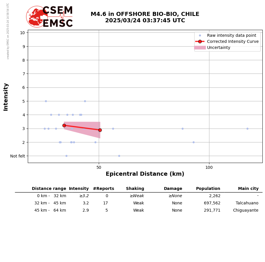 • Furthermore, to avoid the association with wrong events, we filter testimonies in distance and in intensity depending on the magnitude of the seismic event.