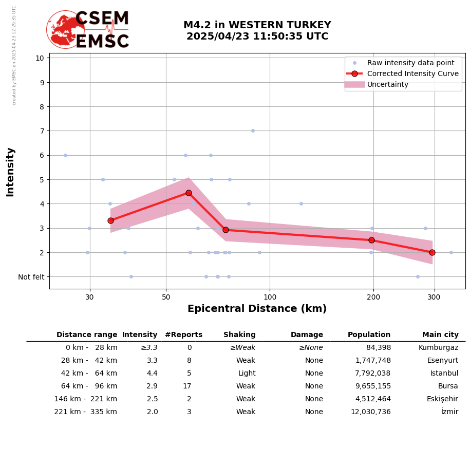 • Furthermore, to avoid the association with wrong events, we filter testimonies in distance and in intensity depending on the magnitude of the seismic event.