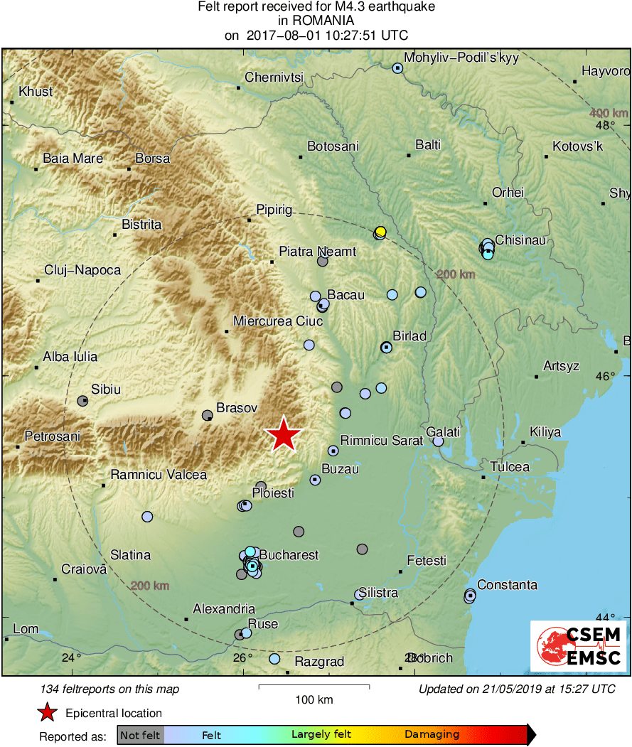 | Distance | 49 km NW of Buzău, Romania / pop: 130,000 / local time: 13:27:51.9 2017-08-01 9 km W of Lopătari, Romania / pop: 4,300 / local time: 13:27:51.9 2017-08-01 |