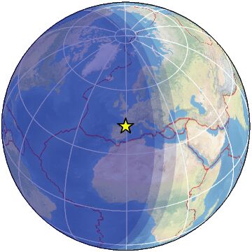 | Distance | 95 km ENE of Pamplona, Spain / pop: 198,000 / local time: 05:34:59.7 2023-02-03 18 km SE of Oloron-Sainte-Marie, France / pop: 12,600 / local time: 05:34:59.7 2023-02-03 |