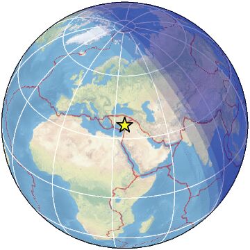 | Distance | 89 km N of Latakia, Syria / pop: 340,000 / local time: 16:29:31.8 2023-02-08 20 km WNW of Antakya, Turkey / pop: 210,000 / local time: 16:29:31.8 2023-02-08 |