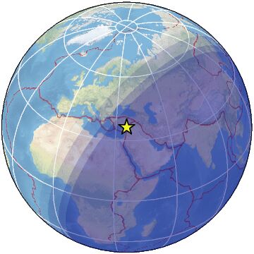 | Distance | 80 km N of Latakia, Syria / pop: 340,000 / local time: 21:23:32.3 2024-05-02 10 km W of Antakya, Turkey / pop: 210,000 / local time: 21:23:32.3 2024-05-02 |