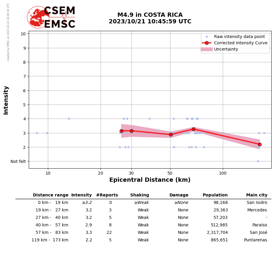 • Furthermore, to avoid the association with wrong events, we filter testimonies in distance and in intensity depending on the magnitude of the seismic event.