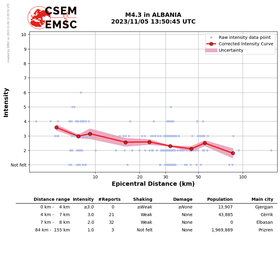 • Furthermore, to avoid the association with wrong events, we filter testimonies in distance and in intensity depending on the magnitude of the seismic event.