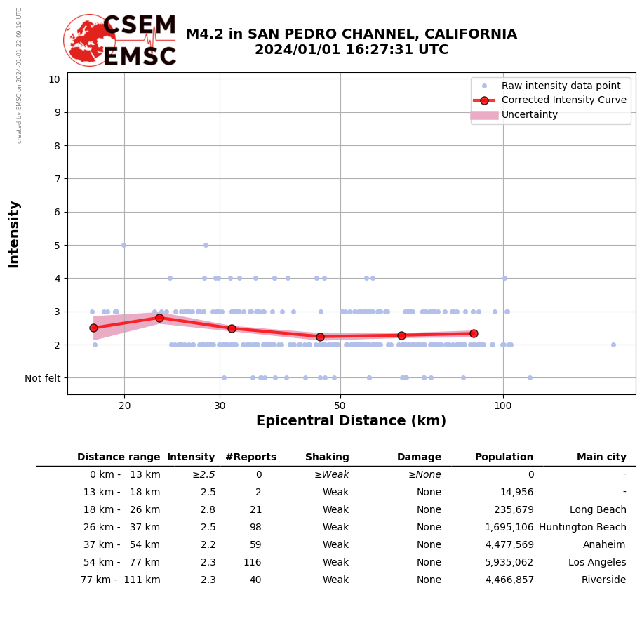 • Furthermore, to avoid the association with wrong events, we filter testimonies in distance and in intensity depending on the magnitude of the seismic event.