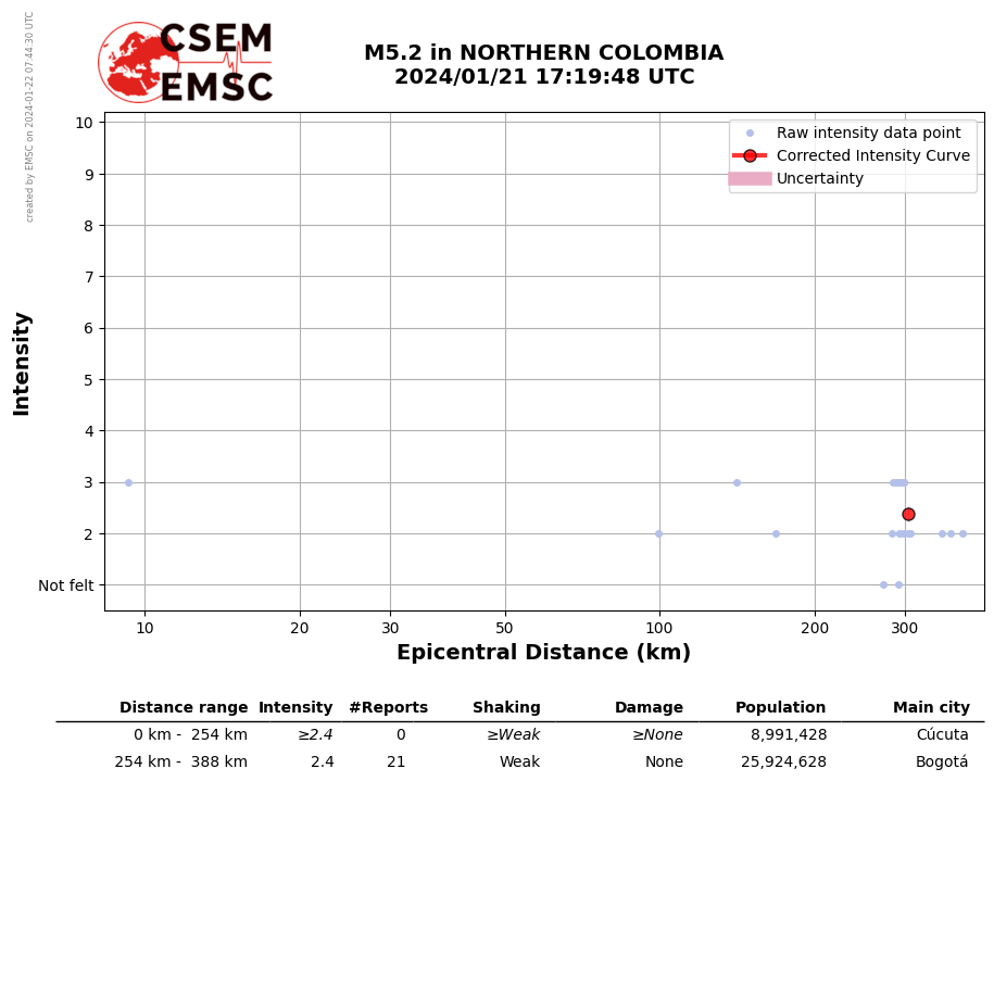 • Furthermore, to avoid the association with wrong events, we filter testimonies in distance and in intensity depending on the magnitude of the seismic event.