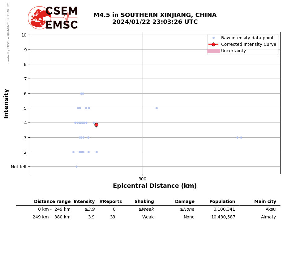• Furthermore, to avoid the association with wrong events, we filter testimonies in distance and in intensity depending on the magnitude of the seismic event.