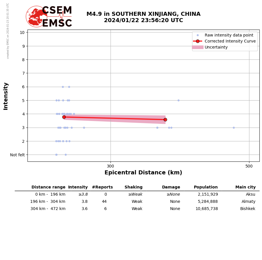 • Furthermore, to avoid the association with wrong events, we filter testimonies in distance and in intensity depending on the magnitude of the seismic event.