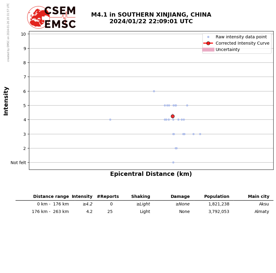 • Furthermore, to avoid the association with wrong events, we filter testimonies in distance and in intensity depending on the magnitude of the seismic event.