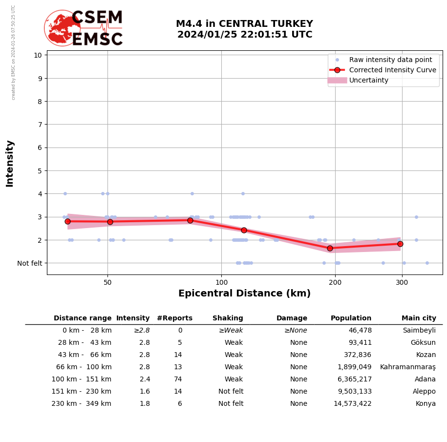 • Furthermore, to avoid the association with wrong events, we filter testimonies in distance and in intensity depending on the magnitude of the seismic event.