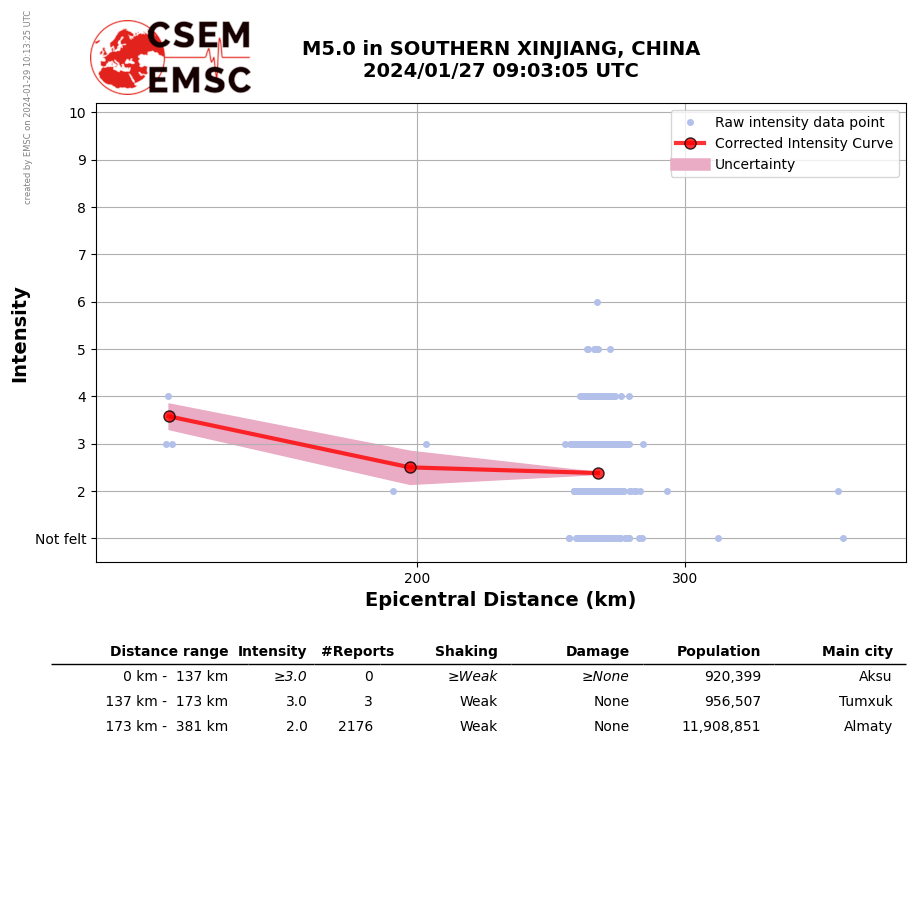 • Furthermore, to avoid the association with wrong events, we filter testimonies in distance and in intensity depending on the magnitude of the seismic event.