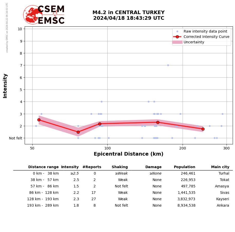 • Furthermore, to avoid the association with wrong events, we filter testimonies in distance and in intensity depending on the magnitude of the seismic event.