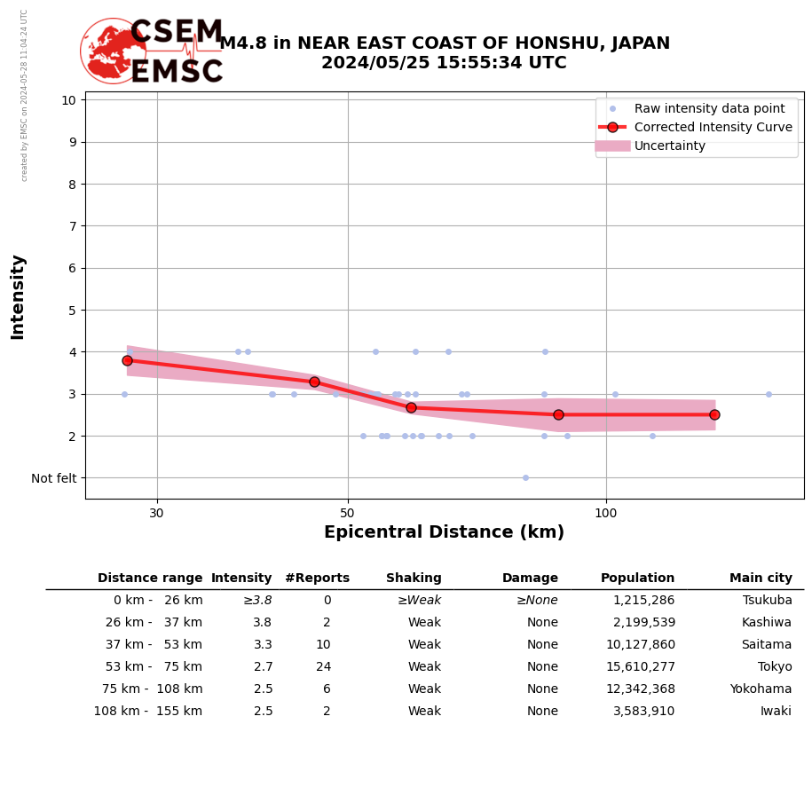 • Furthermore, to avoid the association with wrong events, we filter testimonies in distance and in intensity depending on the magnitude of the seismic event.