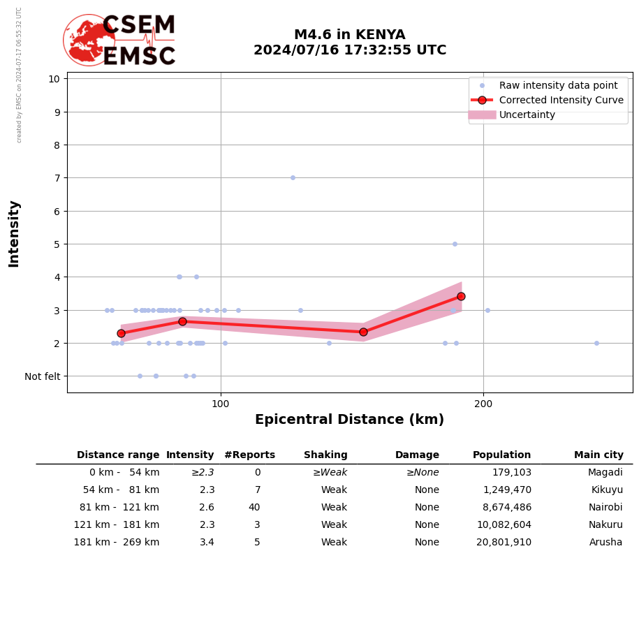 • Furthermore, to avoid the association with wrong events, we filter testimonies in distance and in intensity depending on the magnitude of the seismic event.