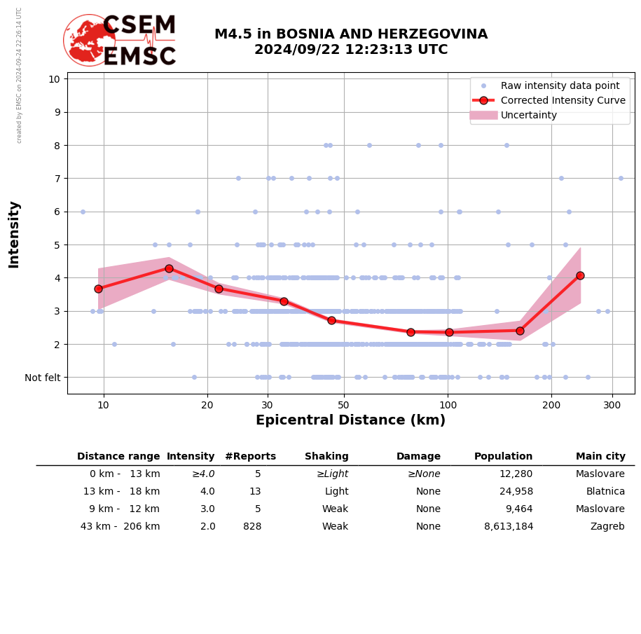 • Furthermore, to avoid the association with wrong events, we filter testimonies in distance and in intensity depending on the magnitude of the seismic event.