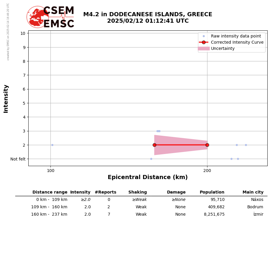 • Furthermore, to avoid the association with wrong events, we filter testimonies in distance and in intensity depending on the magnitude of the seismic event.