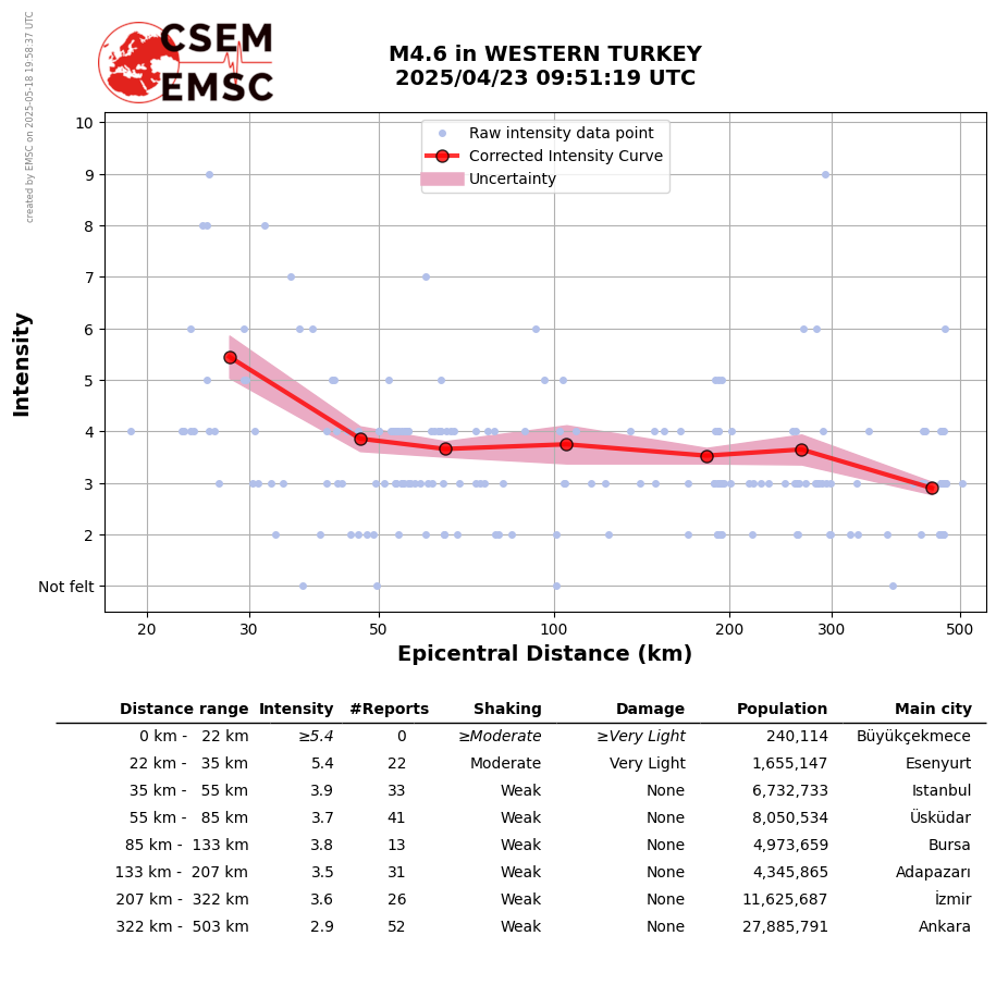 • Furthermore, to avoid the association with wrong events, we filter testimonies in distance and in intensity depending on the magnitude of the seismic event.
