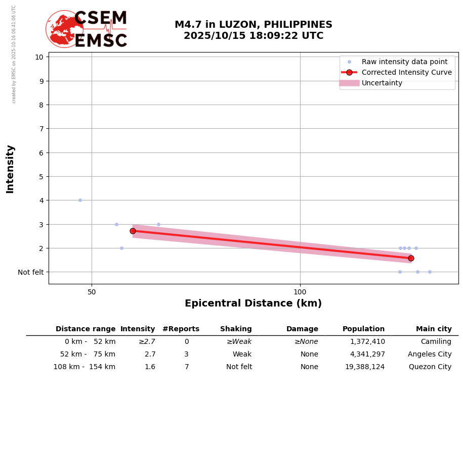 • Furthermore, to avoid the association with wrong events, we filter testimonies in distance and in intensity depending on the magnitude of the seismic event.