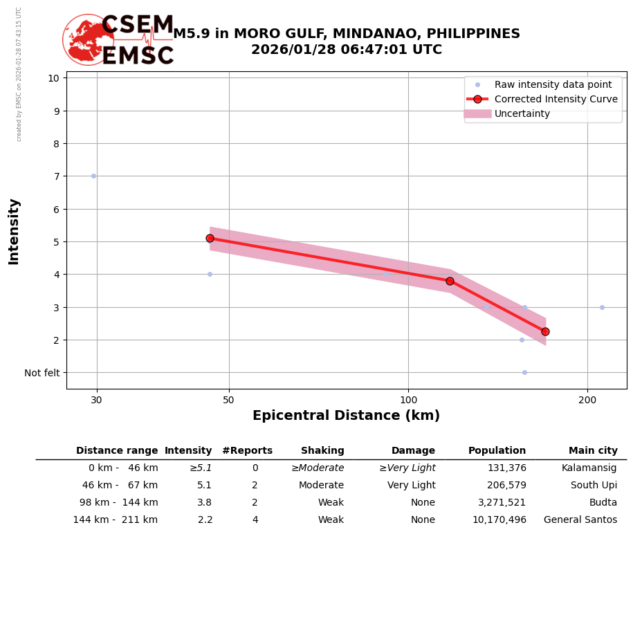 • Furthermore, to avoid the association with wrong events, we filter testimonies in distance and in intensity depending on the magnitude of the seismic event.