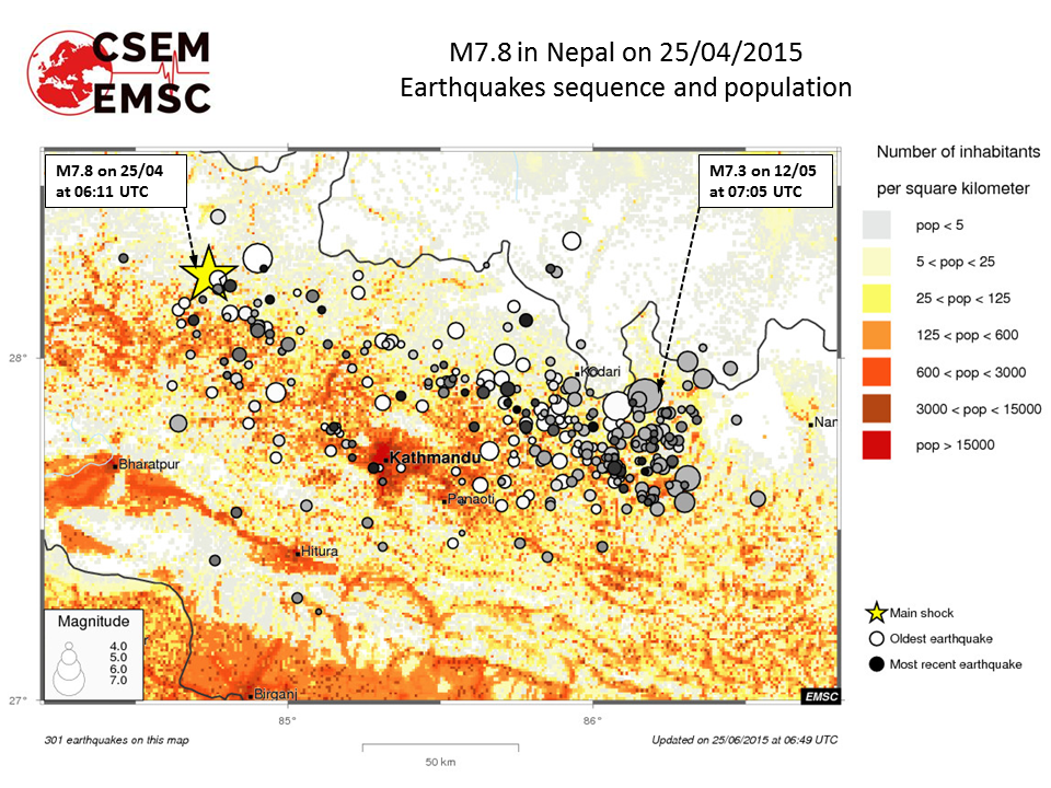 A very powerful earthquake of magnitude 7.8 hit Nepal on Saturday April 25th, 2015 at 06:11 UTC (11:56 Nepalese time). More information on the main shock is available here. The epicentre was located 80 north-west of Kathmandu.