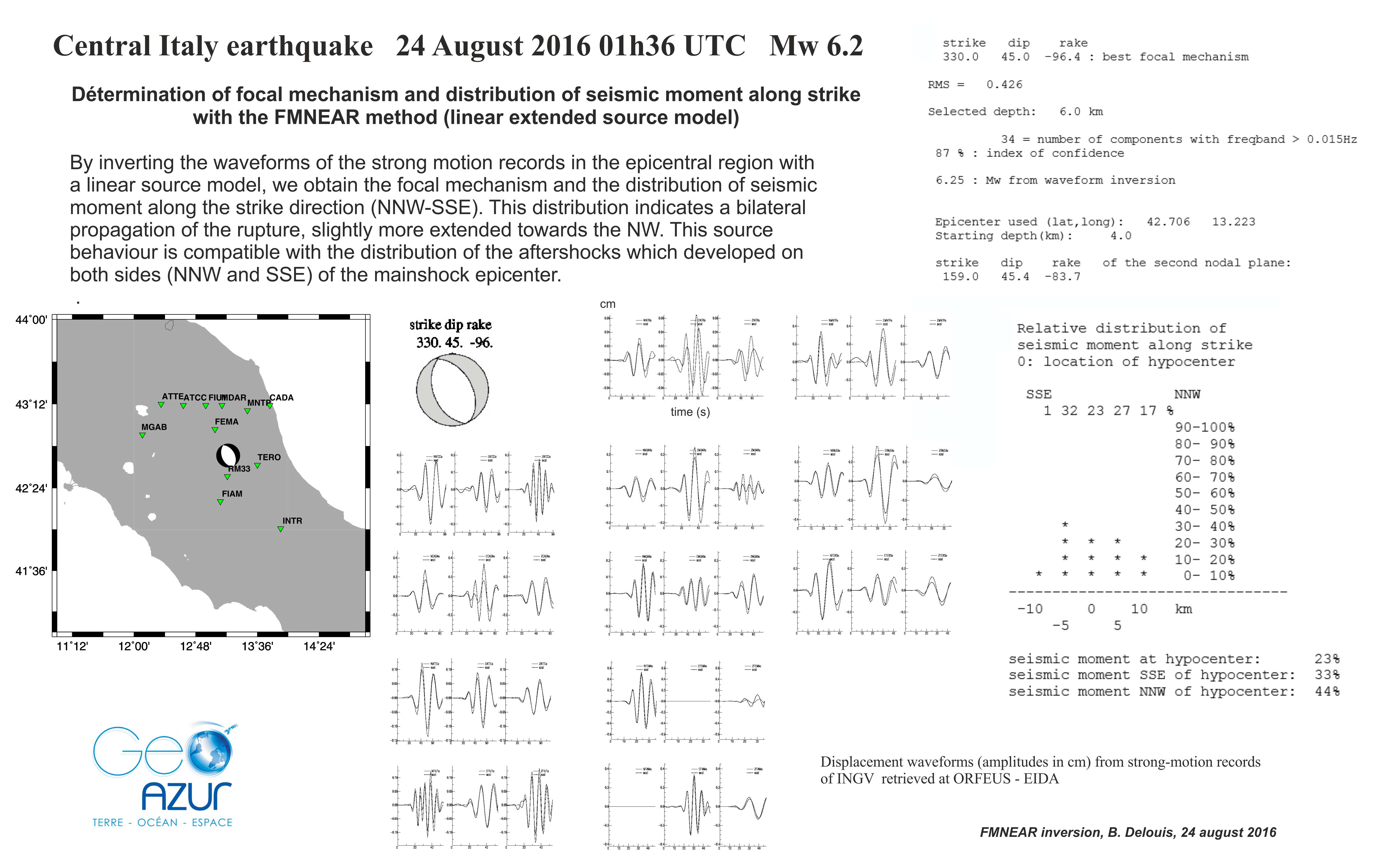 Focal mechanism et distrubution of seismic moment with FMNEAR method by B. Delouis, Géoazur |