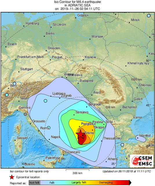 M6.4 ALBANIA on November 26th 2019 at 02:54 UTC